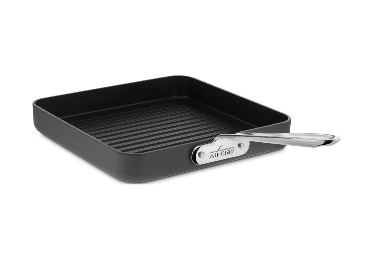 For healthy meals involving searing and browning, this pan will cook meats with using little to no oil. The cooking surface features a nonstick ridged bottom that will add a grilled effect to your foods, while allowing the fat to drain away. The heavy gauged hard-anodized aluminum construction is exceptionally durable & cooks evenly. Compatible to use on gas or electric cooktops and oven safe up to 450°F. Hand wash is recommended when cleaning