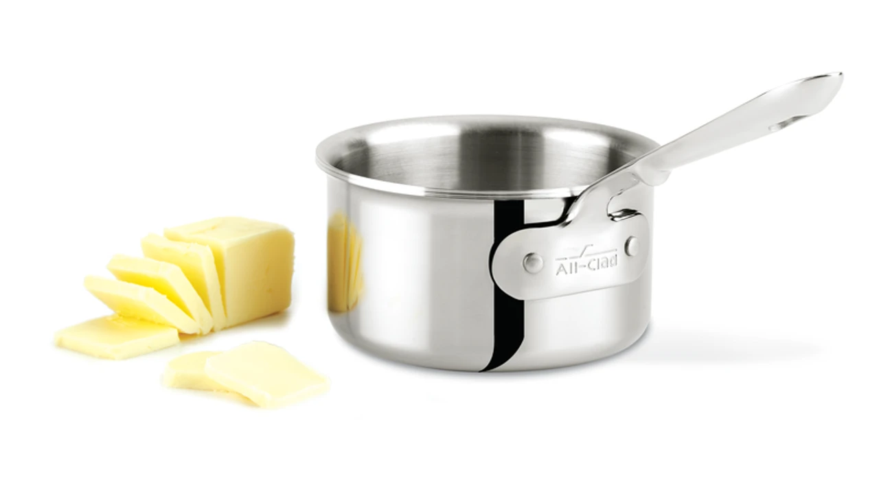 The All-Clad Stainless 0.5-quart Butter Warmer makes a valuable addition to every cookware collection. Its petite design and convenient pour spouts render it the perfect choice for melting butter, warming syrup, sauces or soups and is ideal for individual servings of sides or souffles.