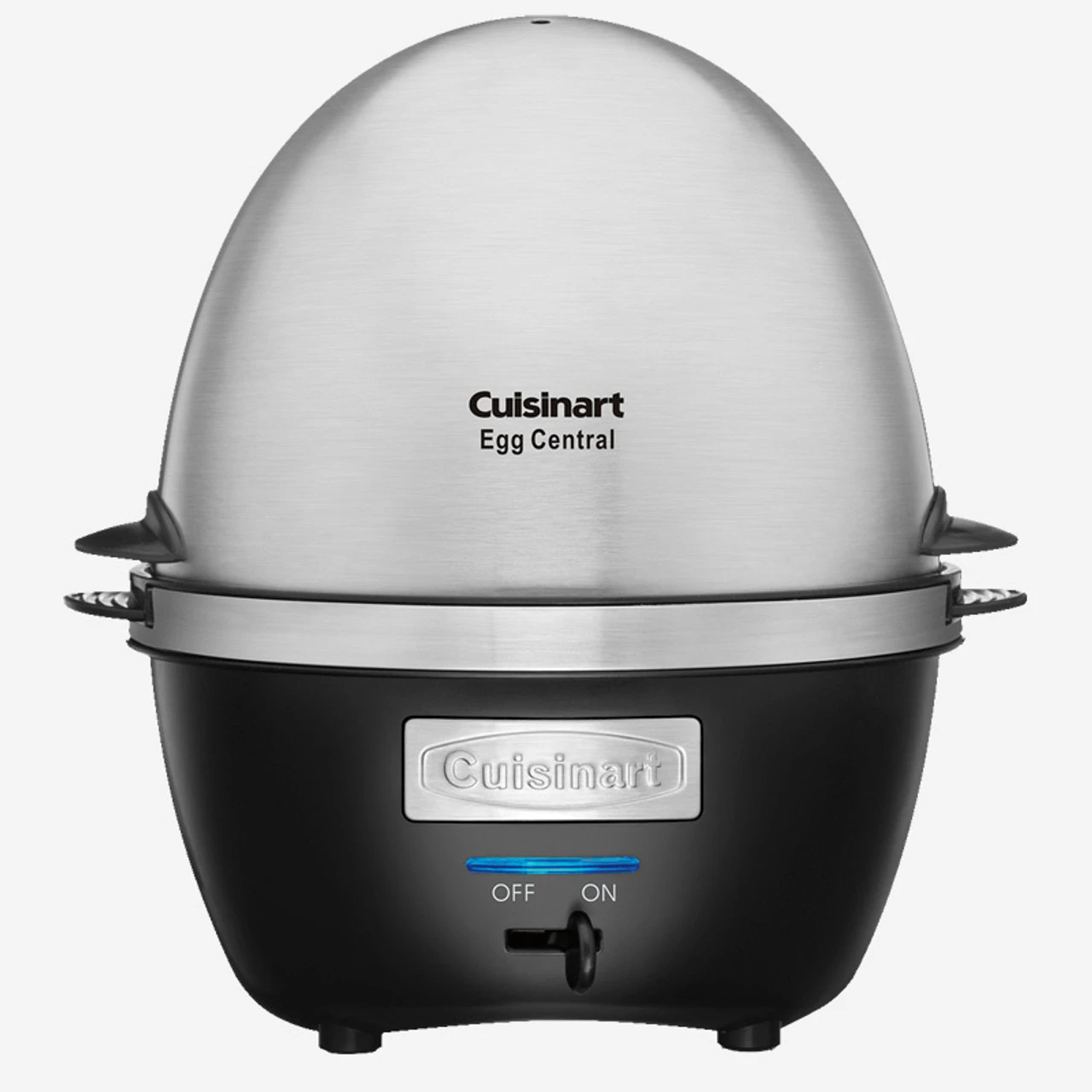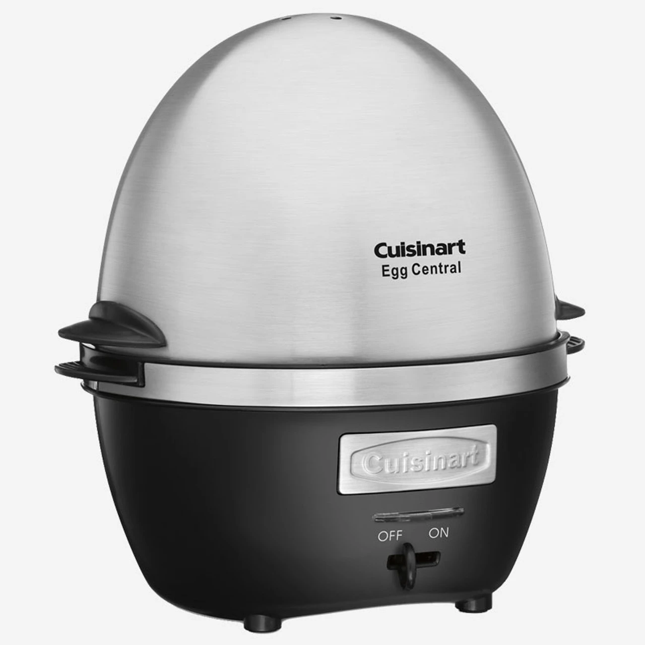 he Cuisinart Egg Central appliance has a new two-tiered cooking system that allows ten eggs to be cooked at once. Eggs can be cooked to a hard, medium or soft consistency. The egg cooker also comes with removable trays that can be used to poach eggs and make omelets. Cooking time is controlled precisely by the amount of water added. Fill included measuring beaker to the appropriate range and pour water into cooking plate. The built-in LED light, audible alert and standby mode help guard against overcooking. All egg favourites can be made in one compact unit.