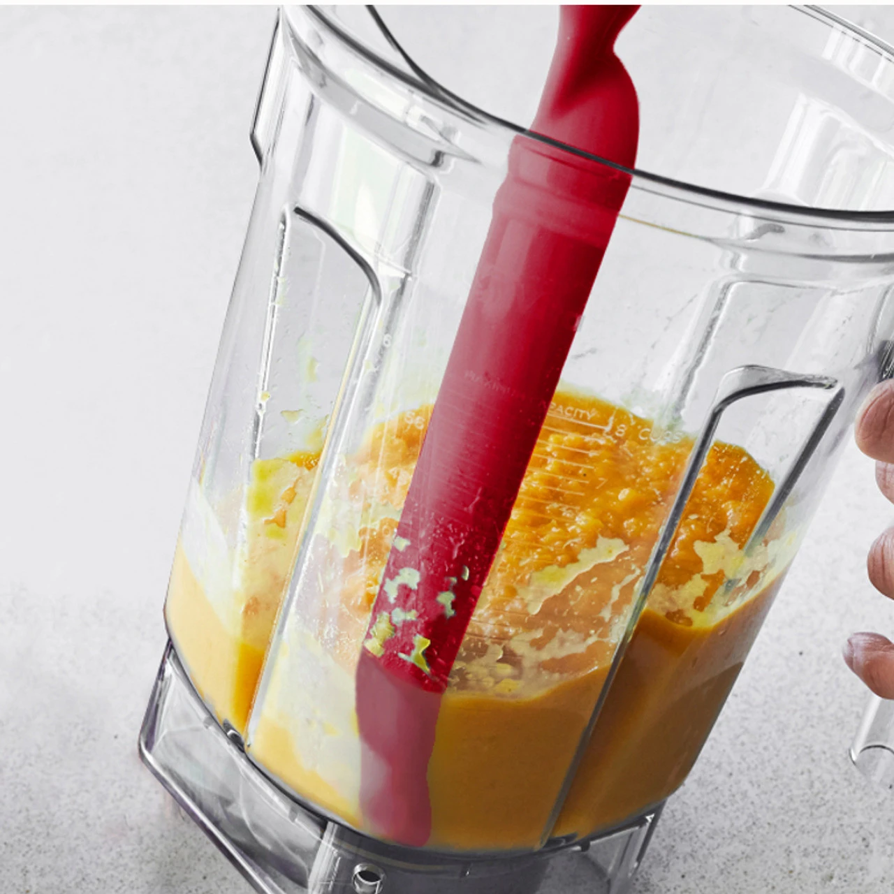Blender Spatula, 29cm (11.5″), red, silicone. Scrape and scoop to get every last bit of mixture. Flexible tip makes it ideal to use in blenders, mixers & food processors. Food safe, heat resistant silicone up to 500F / 260C. Safe for non-stick surfaces.