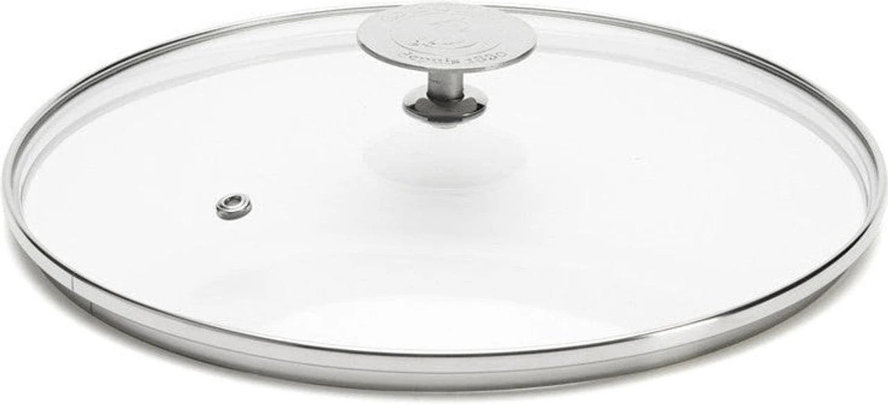 de Buyer – 12.5″ Choc Extreme Glass Lid (32 cm), a culinary masterpiece that combines elegance, functionality, and exceptional craftsmanship to enhance your cooking experience to new heights. This glass lid is a perfect match for all Milady cookware and more, offering a seamless blend of style and substance. Crafted with precision and attention to detail, it stands as an essential tool for anyone who appreciates the art of slow cooking. At its core, this lid boasts crystal-clear glass that allows you to monitor your dishes’ progress as they simmer, sauté, or stew. This transparency not only adds a touch of sophistication to your kitchen but also enables you to maintain a watchful eye on your culinary creations without lifting the lid. This helps in preserving heat, flavor, and moisture, ensuring that your dishes turn out perfectly every time.