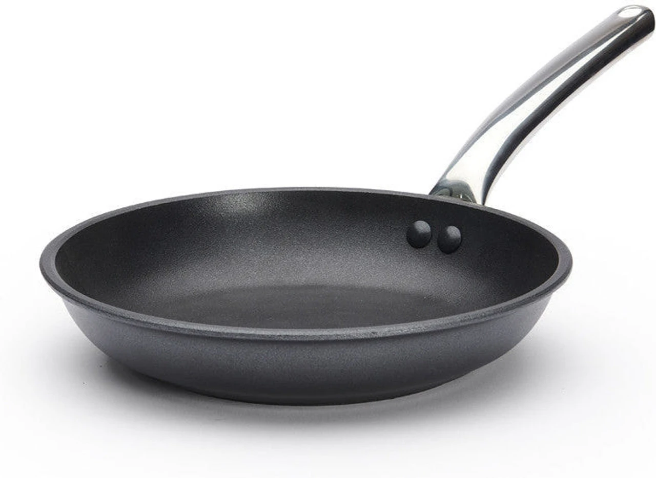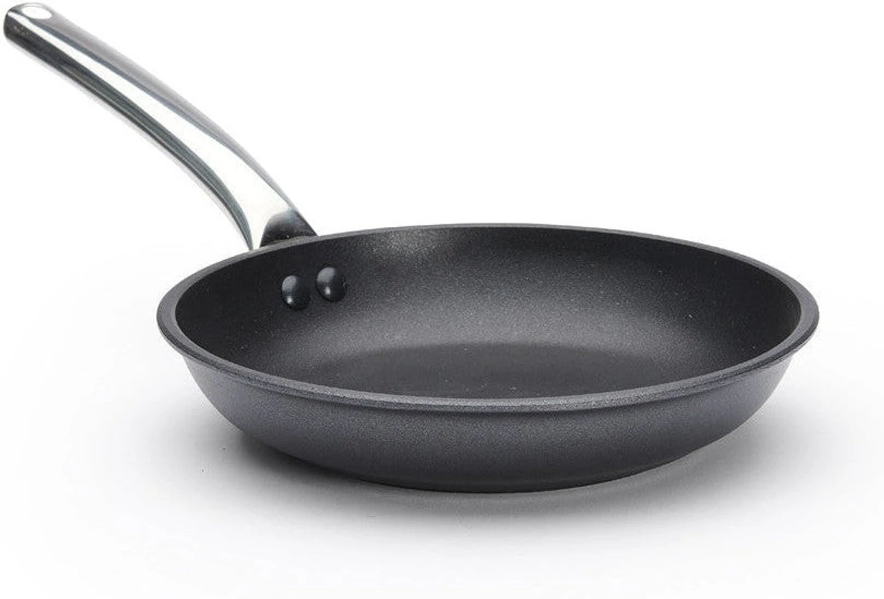 This fry pan is your trusted partner in maintaining precise cooking conditions. Its ultra-thick base serves as a heat buffer, preventing abrupt reactions when exposed to high temperatures. With this fry pan, you have complete control over your cooking process, whether you’re searing, sautéing, or frying. The ergonomic stainless steel handle is securely riveted and remains cool during cooking, ensuring a comfortable and safe grip. You can confidently handle the pan without the need for oven mitts or potholders.