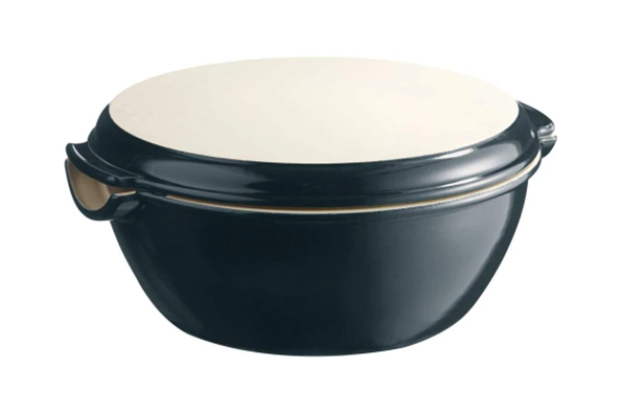 The Dome of the Emile Henry Round Bread Baker is made from refractory ceramic, producing the same level of humidity as a traditional bread oven. This is what creates a thick, crispy crust and a light, airy inside… When used upside down, the lid can also be used as a mixing bowl for preparing the dough and proofing.