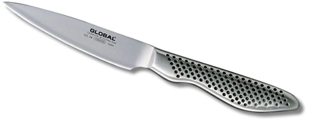 The GS-38 is a beautiful little paring knife useful for lots of little tasks in the kitchen. The hollow handle has an ergonomic shape making this little knife comfortable to handle. The GS Series is Global’s range of small and medium sized knives and encompass everything from cook’s knives to tweezers and spatulas. All GS knives are made with their Chromova18 stainless steel.