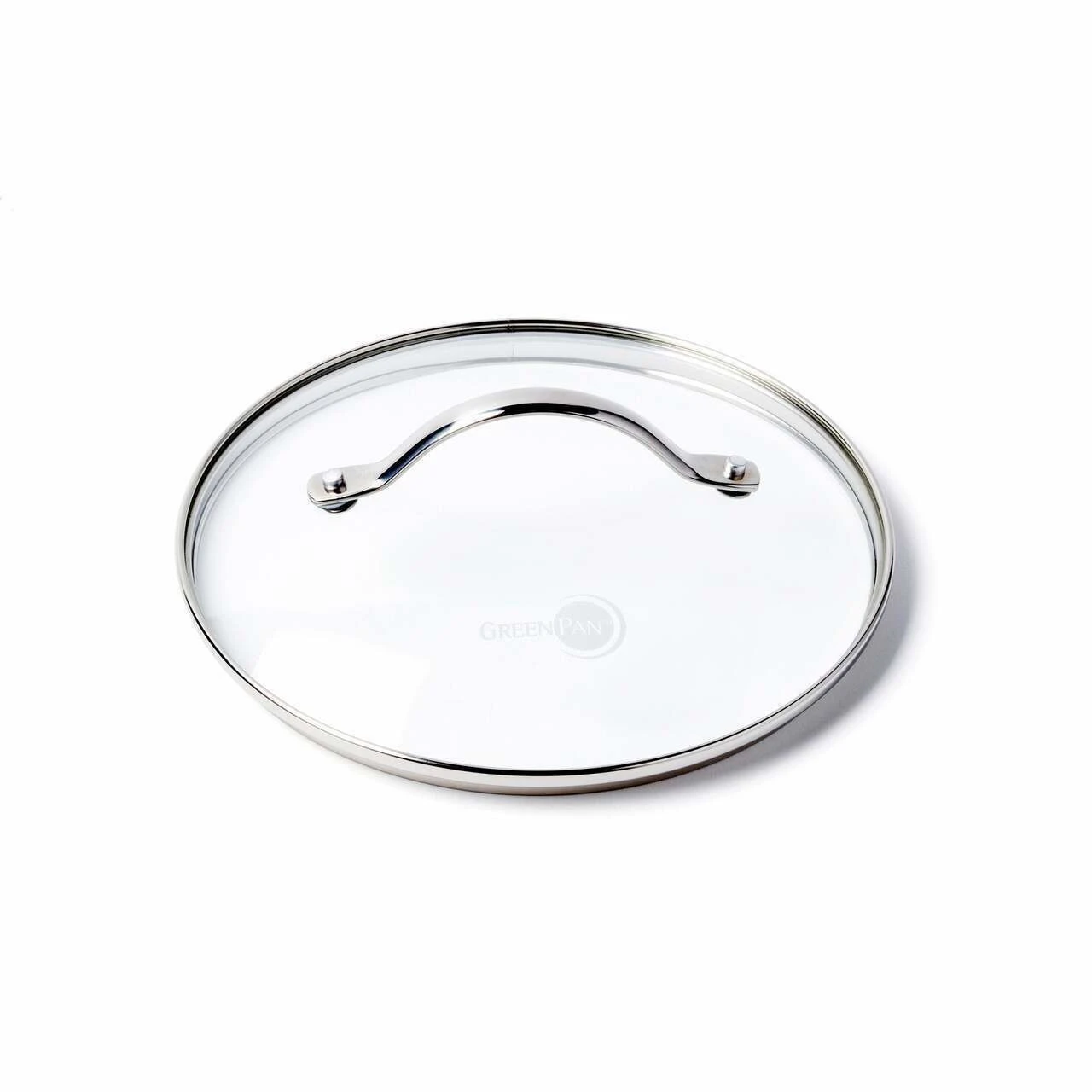 This universal tempered glass lid features a tough stainless steel top handle and a stainless steel rim. Designed to retain heat and prevent splashing, this lid fits all GreenPan collections. Dishwasher safe. Oven safe to 425°F.