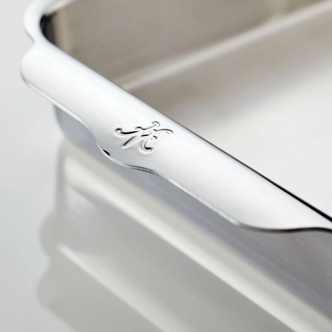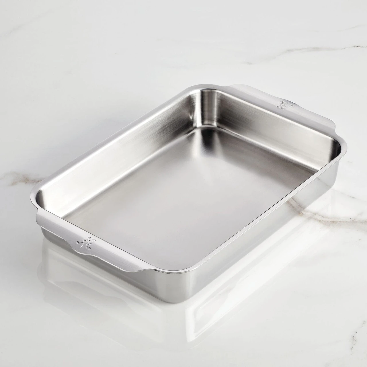 Introduce exceptional craftsmanship and lasting performance to the kitchen with the Hestan Provisions OvenBond Rectangular Baker. This rectangular baker is crafted from triple-bonded clad stainless steel with a responsive aluminum core designed to evenly emit heat, producing beautifully browned goods and perfectly roasted foods. Warp-resistant clad roaster features wide curved handles, providing an easily accessible, firm hold when removing pans from the oven, even when wearing oven mitts. Brushed stainless steel interiors and polished exteriors give this pan a lasting aesthetic that keeps them looking newer, longer, as does the dishwasher safe capability. This gourmet clad baker is broiler safe and oven safe to 600°F to accommodate a wide range of recipes.