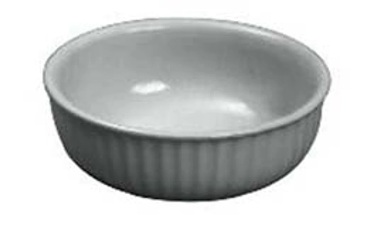 8Oz cocotte. White ceramic with ribbed sides and a smooth interior.Â