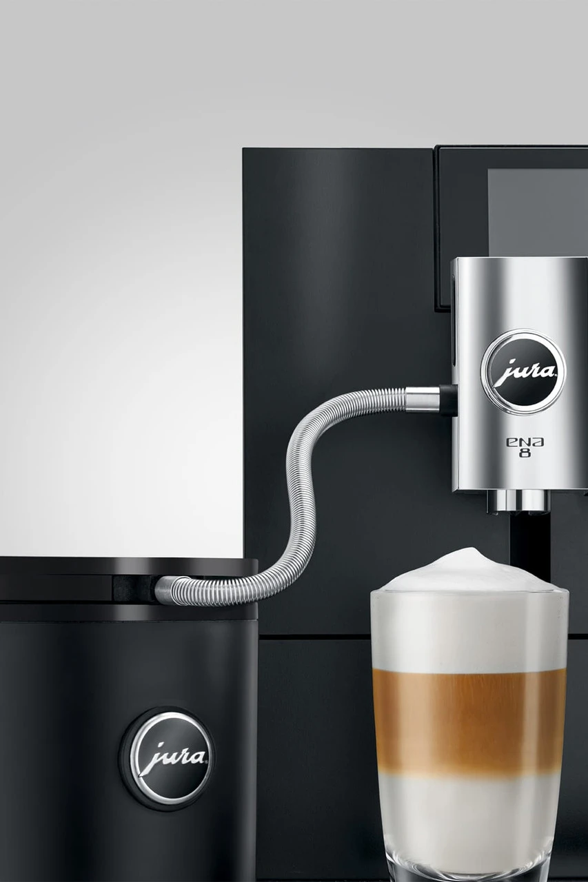You can easily connect the milk pipe with its stainless steel casing to your coffee machine.