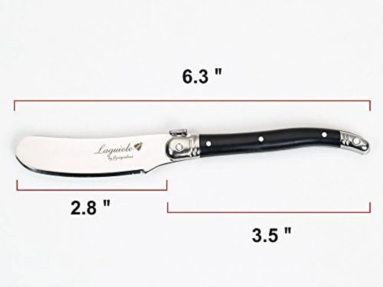 - Set of four identical butter / cheese spreaders with ends and high grade stainless steel heads, black colors ABS plastic handle.
