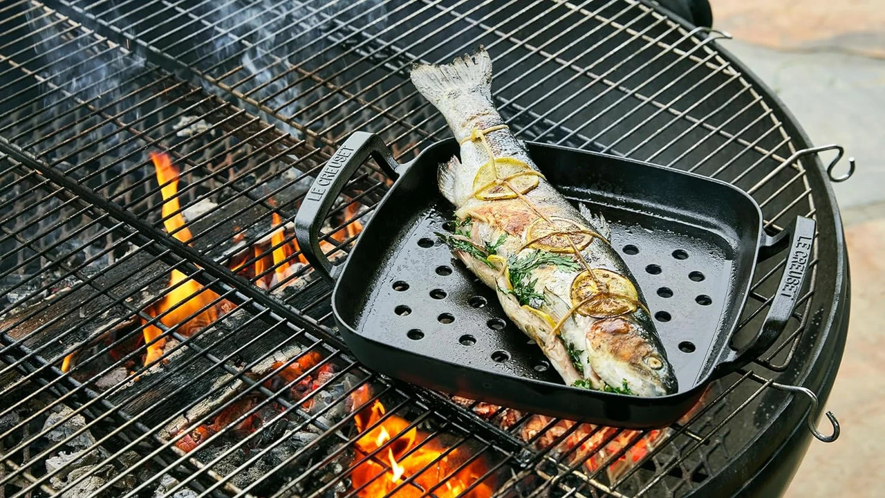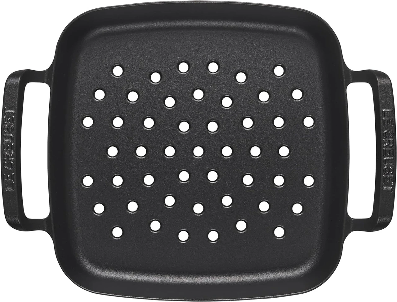 - Holes in the bottom of the basket allow heat to reach the food for smoky chargrilled flavor, but keep small items safe from falling in between the grates
