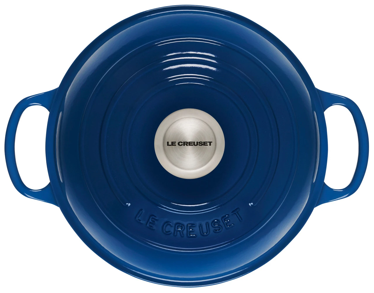 A domed lid traps and circulates steam for maximum rise and ultimate flavour, while the low-profile base promotes even browning and produces a golden, crispy crust marked with our hallmark three rings. Designed with an easy-to-clean matte black interior enamel and fitted with an ergonomic knob and handles, the Le Creuset Bread Oven makes it effortless to bake like the experts at home.