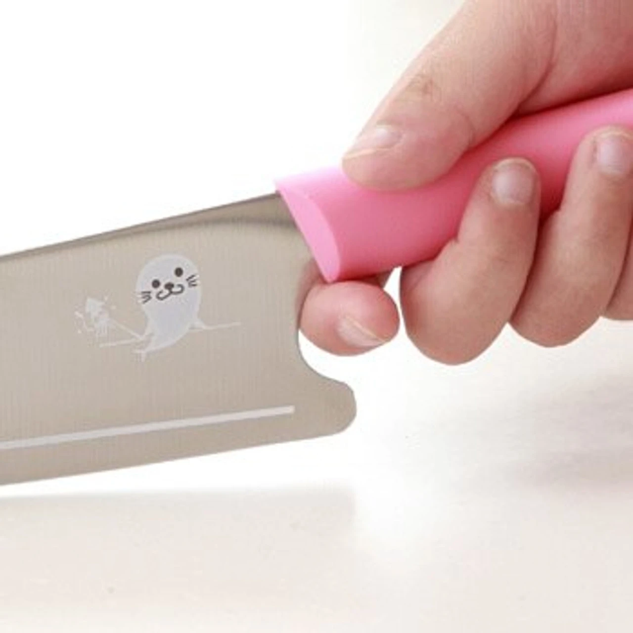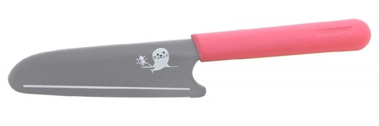 A kid-quality knife. To invite the kids in the kitchen and give them their proper gear is the absolute best way to get food and fun filled children! Children knife has a very functional design.Knife blade trailing edge is patented and create a protection so that your fingers do not slide down under the knife. The tip is rounded to prevent cutting up and the painted line on the bottom edge of the knife blade showing the blade is sharp. The handle is slip-protected for small hands. It is also high enough to avoid the knuckles hit the cutting board. Mac KID is 23 cm long and weighs 58 grams.Â