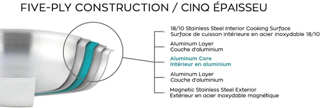 Introducing the Meyer ProClad 1.6L Saucepan, the epitome of enhanced heat control and superior cooking performance. Designed with precision and crafted to perfection, this saucepan takes your culinary experience to new heights. Constructed with a revolutionary five-ply design, the ProClad Saucepan features a combination of 18/10 stainless steel, an aluminum middle core, and a magnetic exterior steel layer. This fusion of materials ensures even heat distribution throughout the entire pan, eliminating any hot spots that can result in uneven cooking. With ProClad, you can achieve professional-level results in your own kitchen.