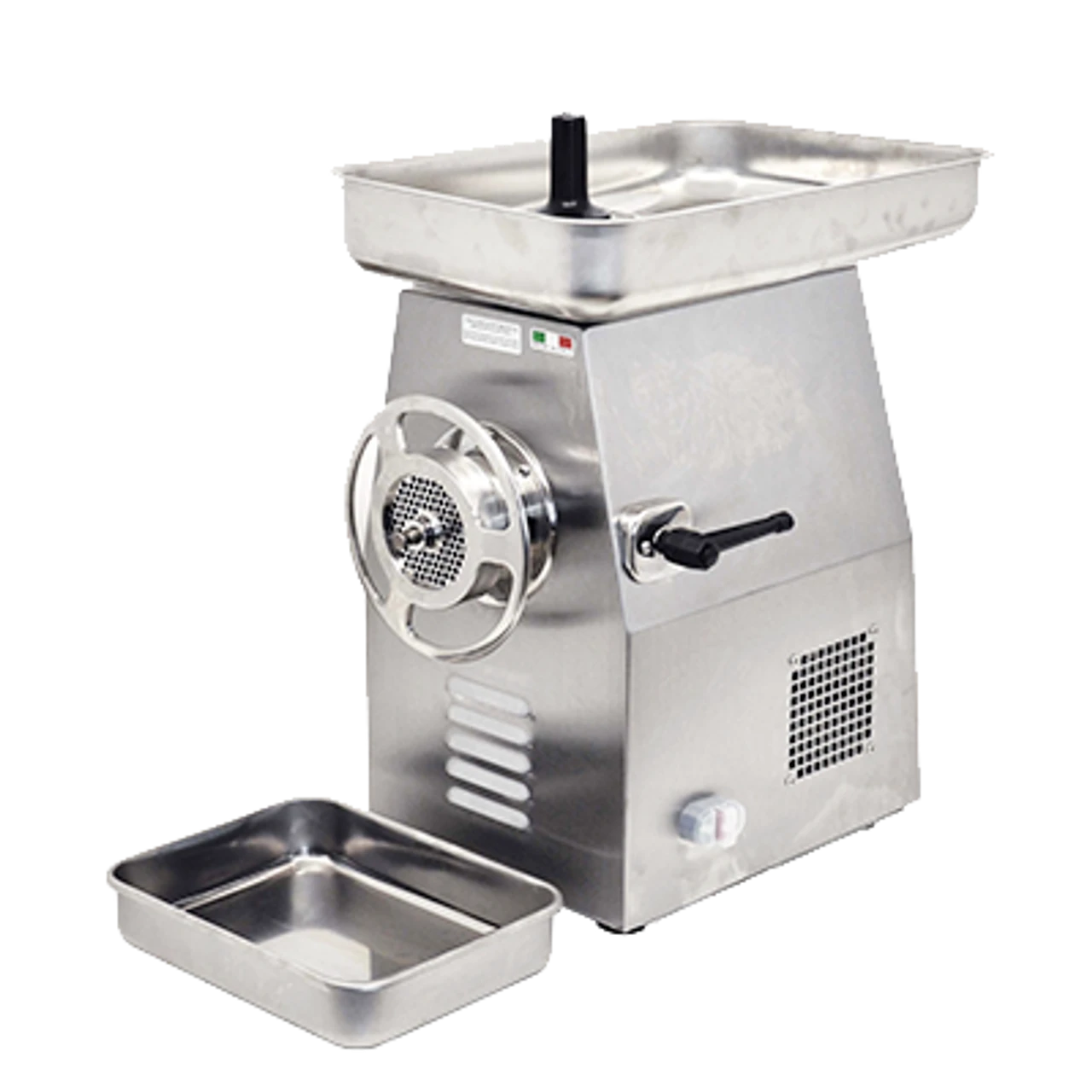 The MG-IT-0032-C heavy-duty meat grinder/ mincer offers a great value with a proven record of dependability and performance. This electrical meat mincer is entirely made of high quality stainless steel, equipped with a safety micro switch, larger tray, hand protection and features high performance 1/4″ plate and European-style knife. Ideal for any restaurant, deli or small butcher shop. Shipped on Pallet