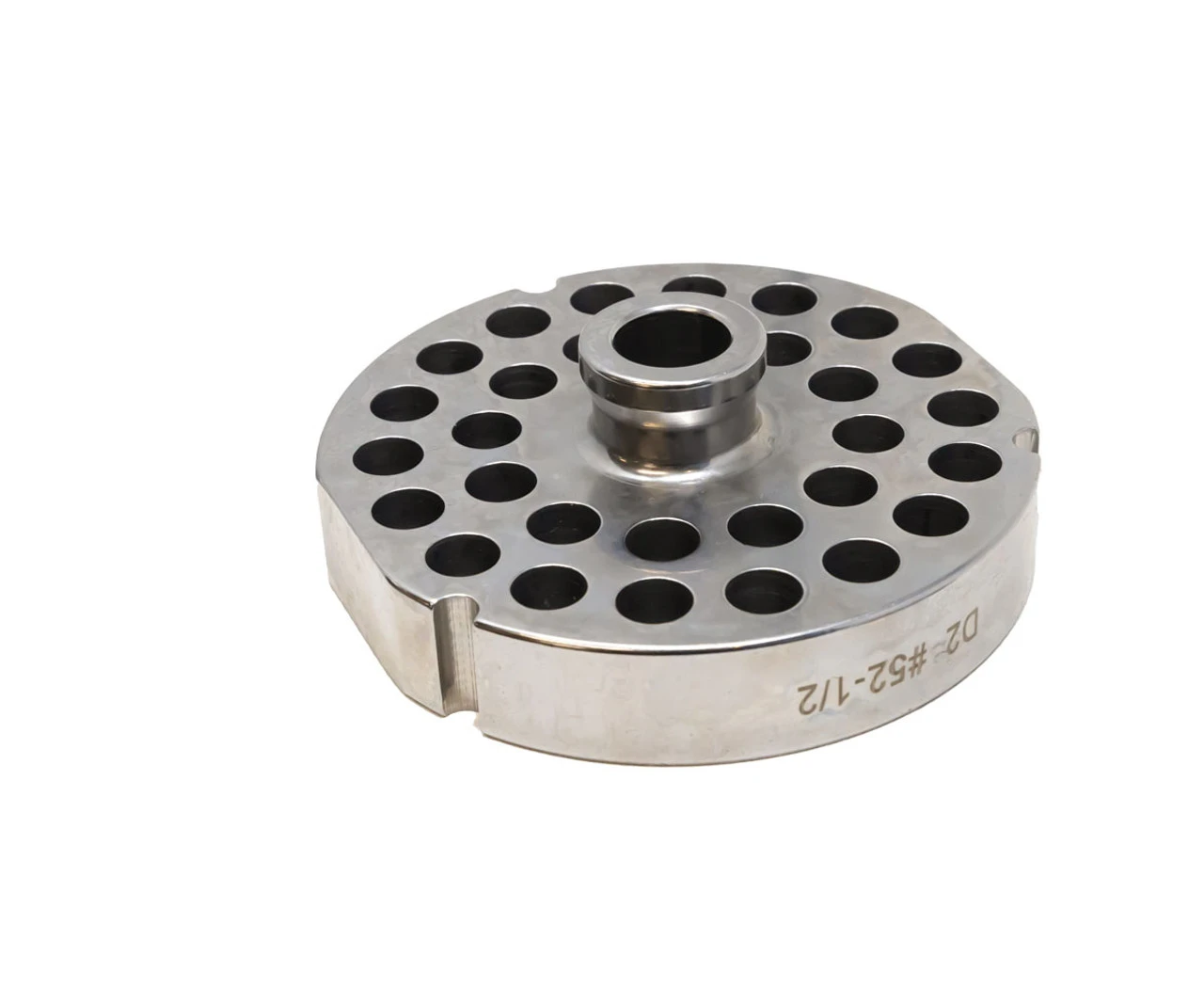 Upgrade your meat grinding capabilities with the Omcan #52 Stainless Steel Meat Grinder Plate with Hub, 12.8mm Holes, 3 Notches/2 Flat Sides – 11177, and experience efficient, reliable, and high-quality grinding in your kitchen.