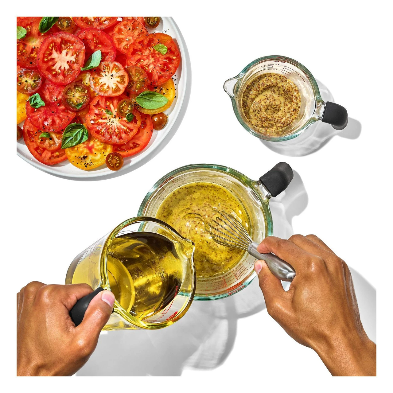 We’ve made measuring, pouring, storing, heating and reheating liquids even easier with the OXO Good Grips 1-Cup Glass Measuring Cup. Not only does it feature our bold, easy to read standard and metric measurement markings, the Cup is made of thermal shock resistant Borosilicate glass so you can take the Cup from the fridge or freezer straight to the oven or microwave without fear of it shattering. That means you can use it to reserve pasta water, heat butter or coconut oil, or reheat a batch of leftover stock or soup. The silicone non-slip handle adds an extra layer of comfort and control as it remains secure in the hand, even if it gets wet. Microwave-, fridge-, freezer- and dishwasher-safe.