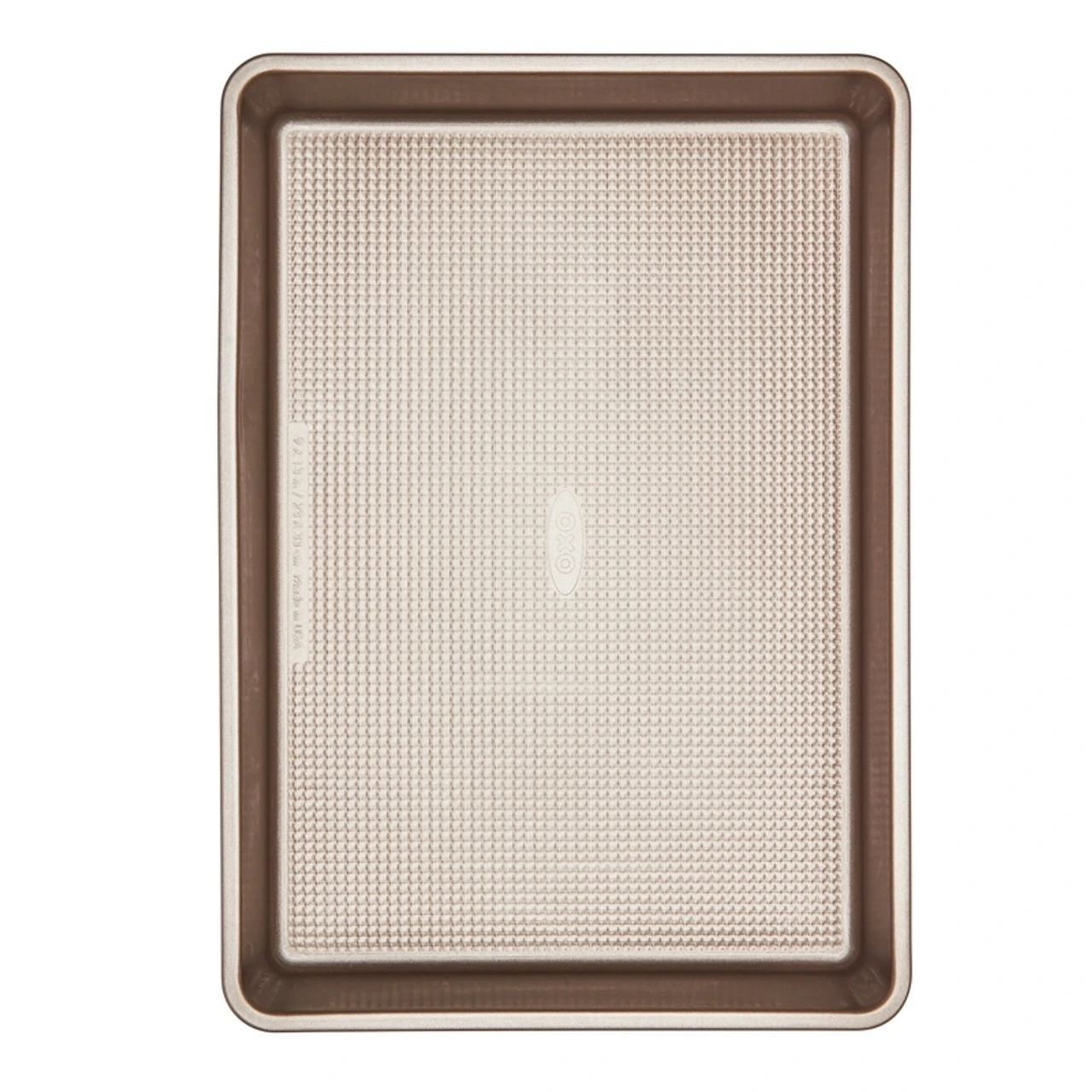 Rectangular Cake Pan, 9 x 13″ / 23 x 33cm, non-stick, BPA free. Great for brownies, cakes and bars. OXO’s line of commercial-grade Bakeware provides professional quality, exceptional durability and superior performance. Each pan is constructed with ILAGâ„¢ technology, a Swiss-engineered, PTFE, ceramic-reinforced, two-layer, commercial-grade coating that provides the ultimate non-stick food release. This feature makes it resistant to scratches, stains, corrosion and abrasions. The micro-textured pattern ensures even baking by minimizing surface contact and promoting airflow, and adds structural rigidity to help prevent warping. Visible pan dimension markings on top surface allow for quick and easy size identification.