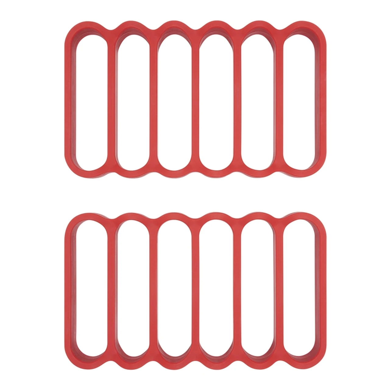 Elevates food above fat and liquid for healthier cooking! Open design allows air to circulate around food for faster, more even roasting. Ideal for roasts, poultry, fish, bacon and vegetables. Designed to hold the weight of large poultry and roasts. Vents on the bottom allow drainage of grease and fat into the pan, away from food. Use Racks individually in a small pan, side by side in a large pan, or stacked for extra elevation. Racks sized to fit side by side in a baking half-sheet. Made from high heat-resistant silicone.