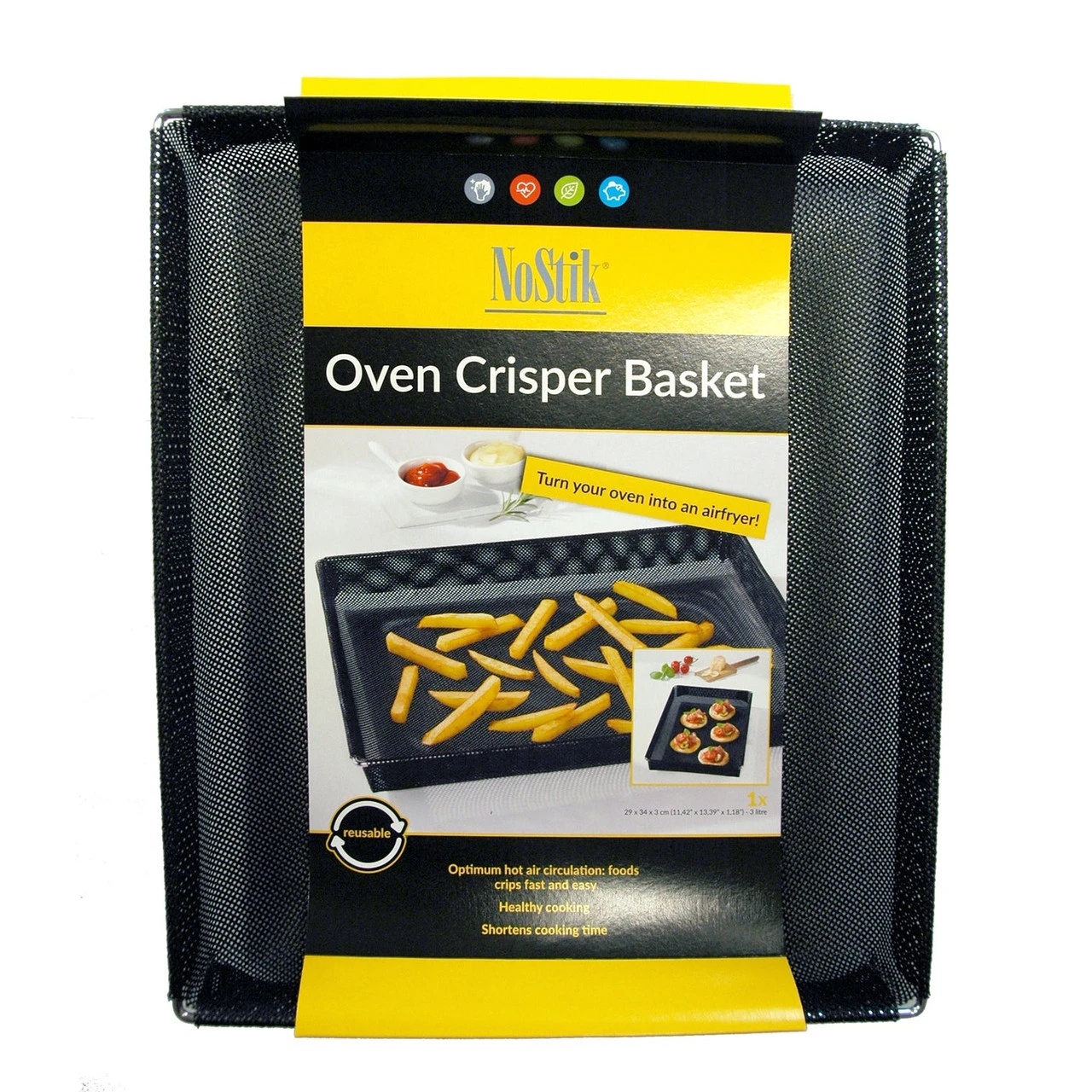 Perfect heat circulation in order to crisp up food / Turn your oven into an airfryer / Wire Reinforced/ Reusable / No oil or butter needed (Healthy living) / Heat resistant up to 260°C / Easy to clean