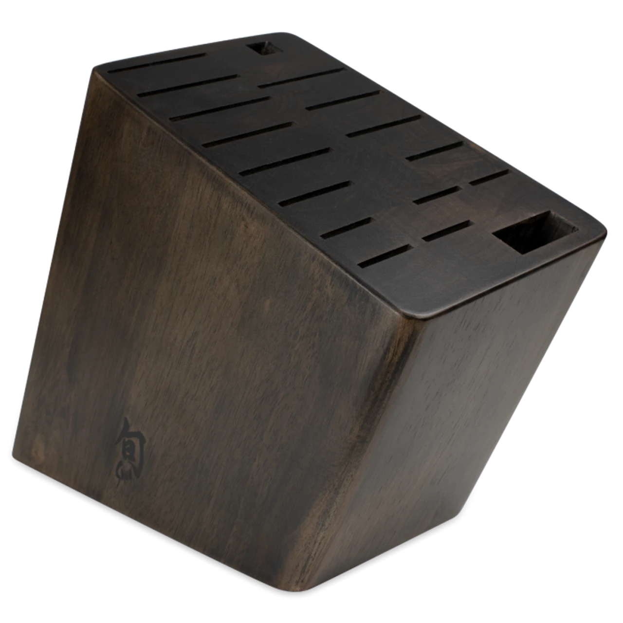 The Kanso 17-slot block offers room for your expanding Kanso collection. This solid wood block is finished to match Kanso’s tagayasan (or wenge) handle and works beautifully with other Shun styles as well. This handsome block features 17 slots, including one to accommodate a honing steel and one for a handy pair of kitchen shears.