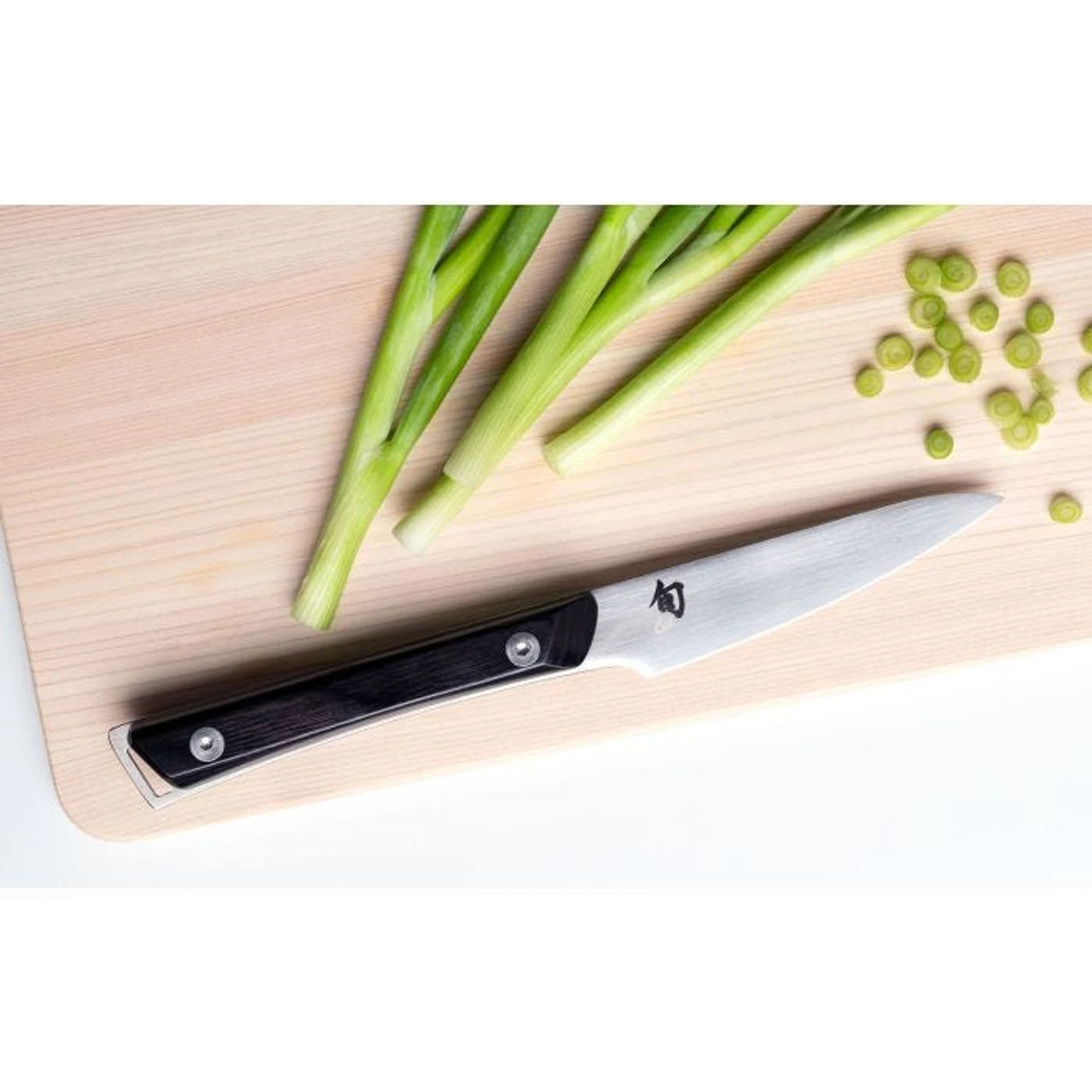 Like the chef’s knife, the paring knife is exceptionally versatile. It gets its name from its main function—removing or “paring” away things like peels or pits from fruits and vegetables. It’s ideal for peeling, coring, trimming, decorating, and other detail work. Its small size gives you complete control over the tip and edge of the blade. The contour of the handle provides a secure, comfortable grip. In Japanese, “Kazahana” means “Snow that flickers like petals dancing in a clear sky,” much like the finish on its beautiful satin finish blade.