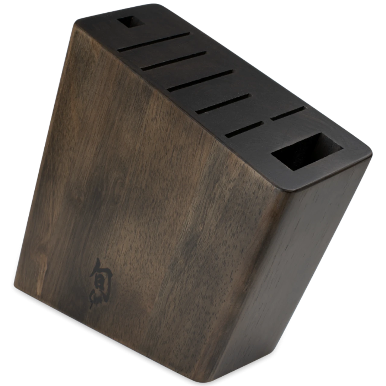 This handsome hardwood block features 8 slots to accommodate your 8 favorite pieces of Shun Kanso kitchen cutlery. Finished to be in harmony with Kanso’s tagayasan handle, the block offers 4 wider slots, two narrower, as well as a slot for a pair of kitchen shears and a honing steel.