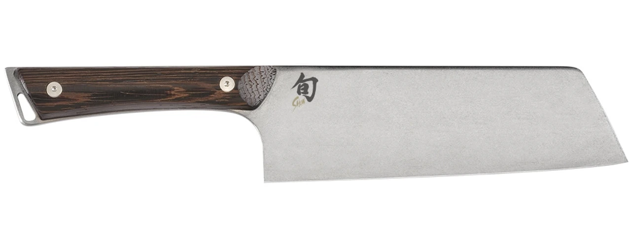 The Shun 7-in. Asian Utility is part of the Shun Kanso series. Kanso is a design principle based on Zen philosophy. It means “simplicity,” but simplicity that is achieved by eliminating the non-essential. In Kanso, we took away anything that doesn’t matter and kept everything that does: high-performance steel, razor-sharp edge, perfect balance, and precision cutting control. The steel is Japanese AUS10A—highly refined, high-carbon, vanadium stainless steel that takes a razor-sharp edge and holds it longer. Kanso’s Heritage finish hides scratches and gives Kanso a rustic look that just improves with age. The handle is made of a wood called tagayasan or wenge, which is sometimes known in Japan as “iron sword wood.” The handle contouring enables an easy chef’s grip. Full-tang construction provides strength, balance, and easy cutting control. Like all Shun knives, Kanso is sharpened to a 16° cutting angle each side to cut cleanly and help preserve food’s freshness and best taste.