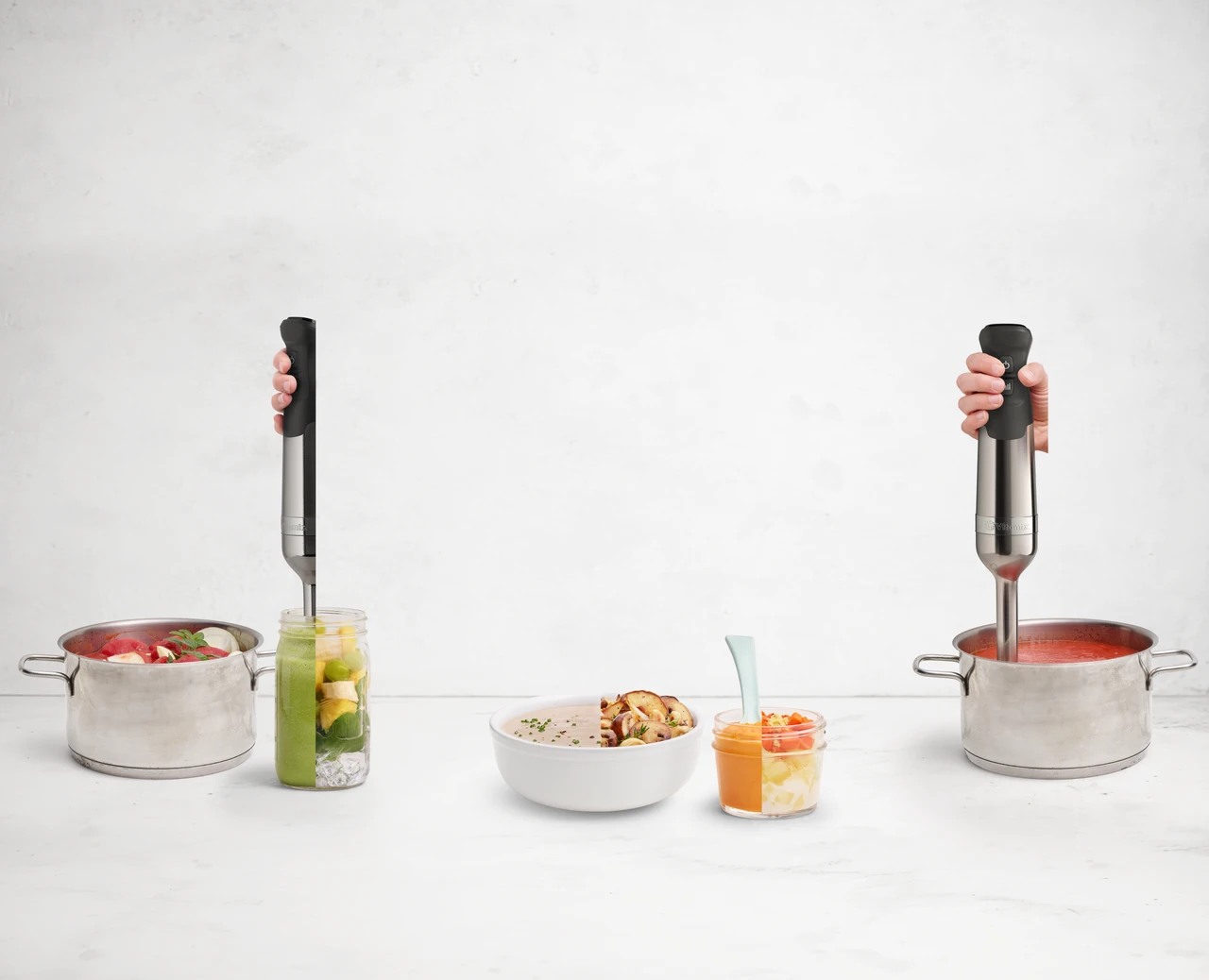 One Handed Operation allows users to add ingredients without interrupting the blend, 5-Variable Speed settings, LED light display & Ergonomic Handle Design , Scratch Resistance Blade Guard prevents scratching and marring favorite pots and pans, Easy twist lock assembly, Powerful Motor – 625 watts make every blending task faster, Stainless Steel Body compliments other kitchen appliances, 3 Year Full