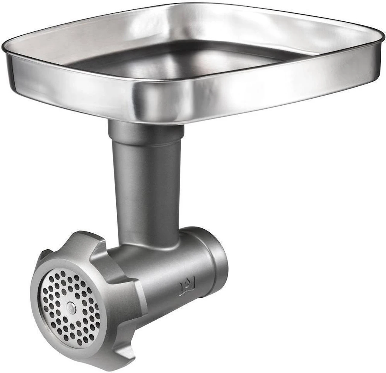 Broaden the range of tasks for your Wolf Gourmet Stand Mixer with this grinder attachment. Perfect for preparing homemade hamburgers, meatballs and sausages, it handles both raw and cooked meats, as well as hard cheeses and bread, and produces fine, medium and coarse grounds. Made of cast aluminum and durable stainless steel, this grinder is made to last, like all Wolf appliances. Includes three grinding discs, sausage disc, funnel, and food pusher. Convenient storage case.