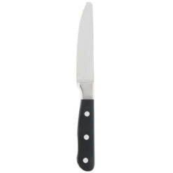 This Deluxe Chop House knife features a thick handle with a contoured underside for more comfortable holding. Its handle has a durable, yet attractive black ABS plastic construction. For added durability, the handle features a metal tang construction. Use this knife to complete every table setting during lunch or dinner service!