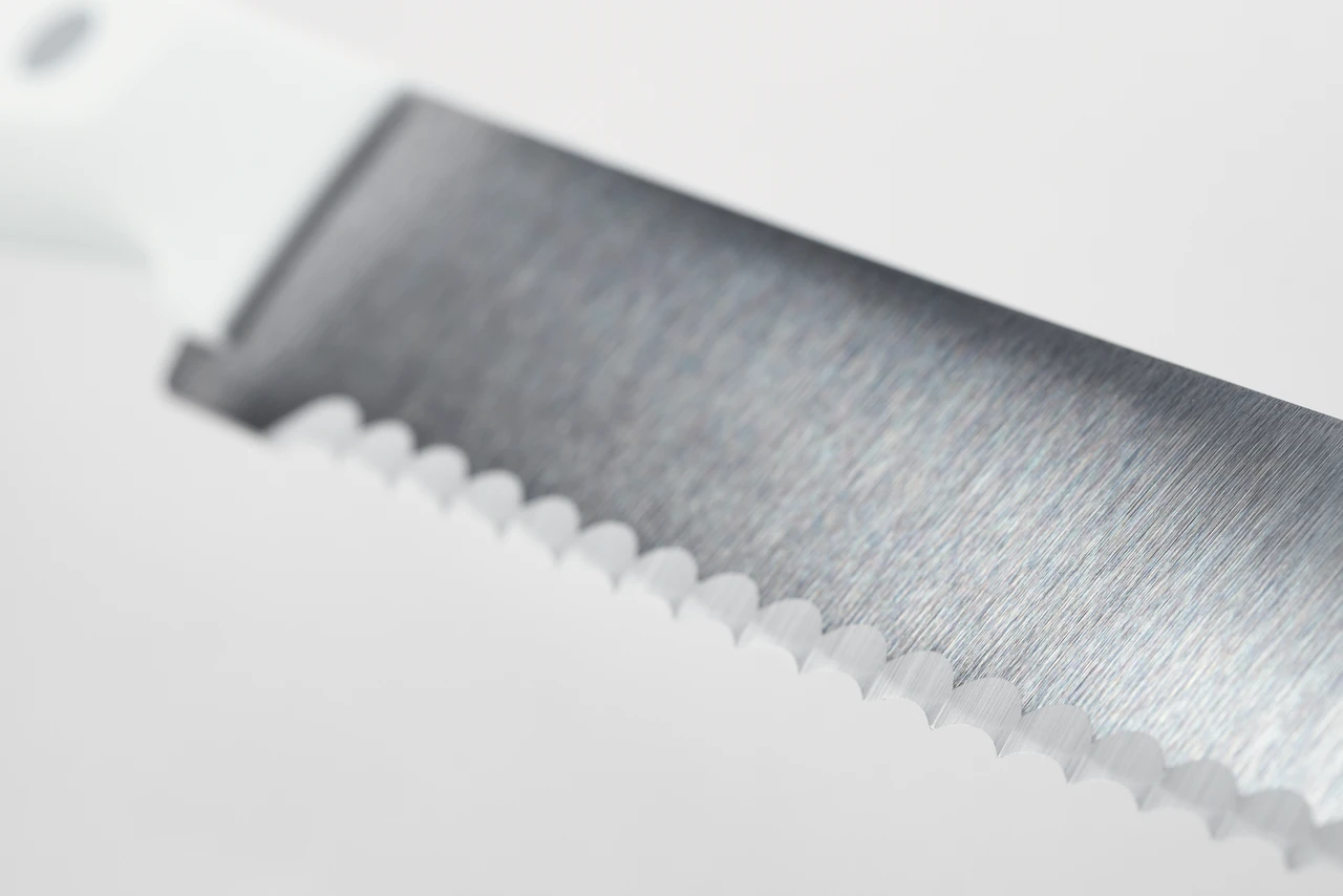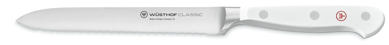 The Classic White Series by Wusthof embraces all the favourite features that foodlovers and professional chefs have come to rely on from the Classic series, butnow with a refined white handle. The White series combines Wusthof’s 200 yearsof experience in the art of forging knives with a modern simplistic design fortimeless knives that offer everything you need for preparing and plating freshfood. The handle now features the red renowned Wüsthof trident embedded inthe handle for a modern take on an old classic. Perfectly balanced, each knife iscomfortable to hold as you prep ingredients for any dish with effortless control.Manufactured entirely in Solingen, Germany.