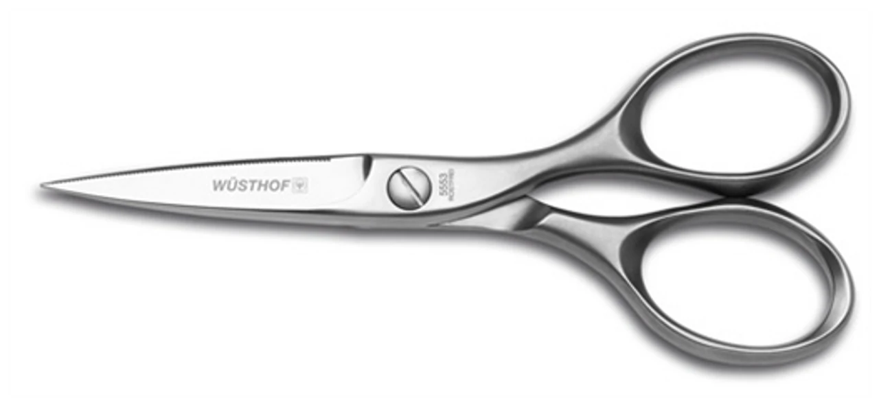 The Wusthof Forged Stainless Kitchen Shear is a time saver. One tool that can open boxes and bottles and then snip herbs or cut flowers. You will be amazed how many uses you will find.Â