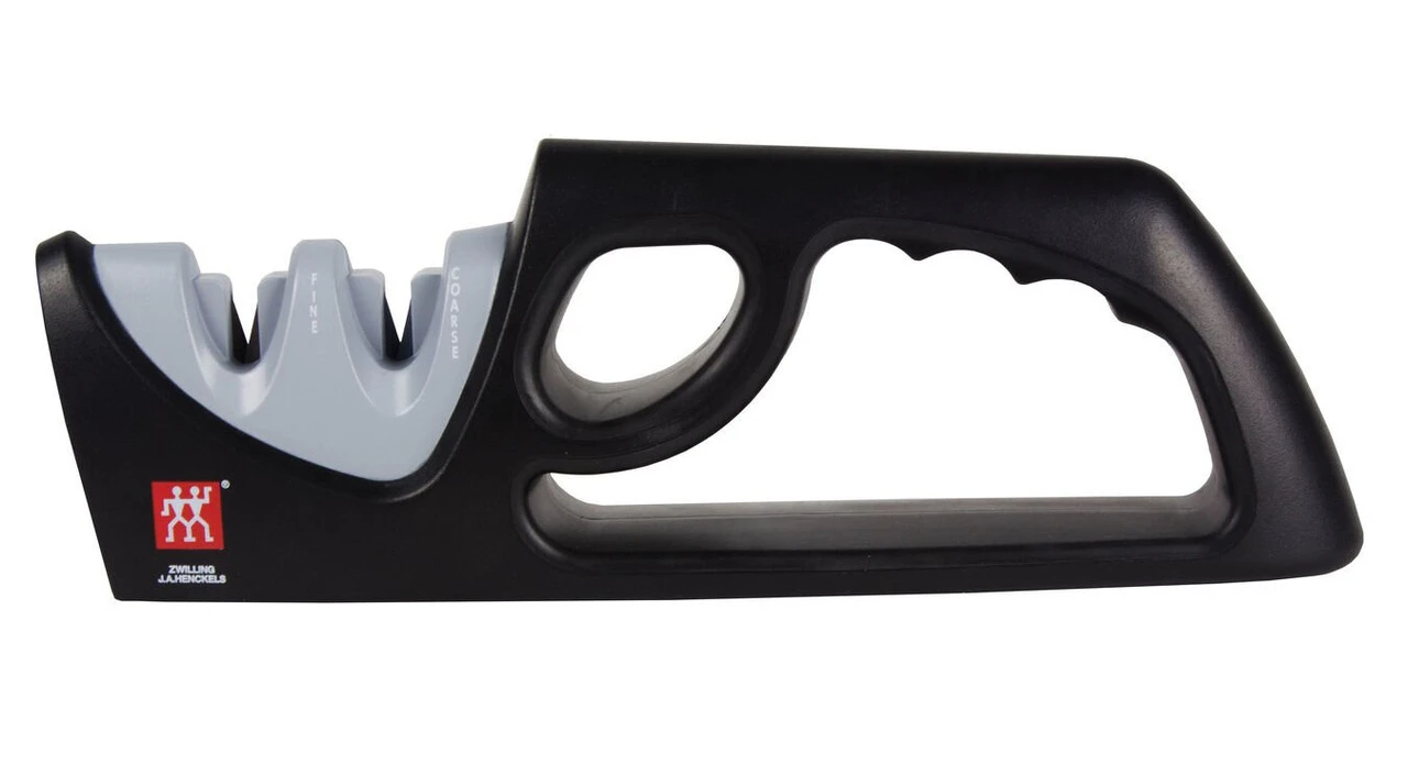 Safely and easily keep your knives razor sharp with the ZWILLING 2-Stage Pull Through Knife Sharpener. Ceramic rods in both coarse and fine grits will put an edge on even the dullest knife with only a few strokes. The safety grip keeps your fingers out of harm’s way while allowing the sharpener to stay firmly on a surface. Suitable for all western-style blades with a fine-edge.