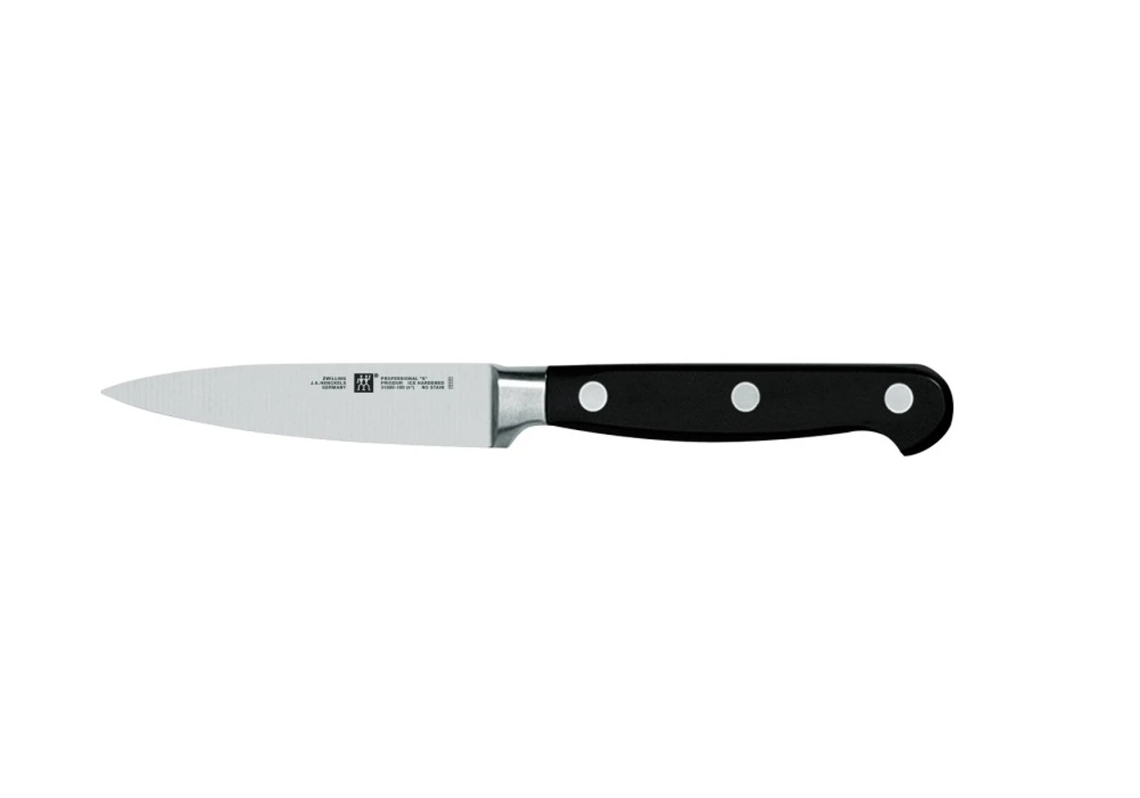 Add creative flair to your meals with the ZWILLING paring and garnishing knife: the possibilities are endless. This knife has a 10 cm long blade and so is perfect for preparing smaller or medium-sized ingredients. Chefs use this knife in many professional establishments to chop fresh herbs or peel onions or garlic. Be creative with these ingredients to season your dishes according to your taste. The paring and garnishing knife is perfect for peeling, cutting, cleaning and garnishing fruit and vegetables as well as cutting smaller pieces of meat. The versatile uses of this implement are what truly set it apart. The exceptional quality of this product continues to win over professional chefs and enthusiastic cooks alike. It is made of a continuous piece of steel, making it extremely durable. The tang is connected to the handle by triple rivets, giving greater control of the blade, as well as giving it a visual appeal. A further outstanding feature of this knife is the high-grade steel used in its production. This steel is corrosion-resistant and features a precise cutting edge, enabling you to tackle all cooking tasks easily and effortlessly. This paring and garnishing knife from the PROFESSIONAL “S” series provides a versatile implement for all your cutting and peeling tasks.