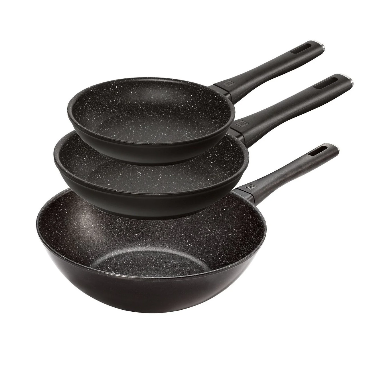 The Marquina 3pc non-stick granite cookware set is the perfect starter packs for home chefs. Prepare eggs, pancakes, paella and stir fries with this 3 pack frying pan and wok set from ZWILLING. The special design by Studio Thun from Italy makes this frying pan a visual delight. Duraslide – Granite non-stick coating offers 100% improved wear resistance compared with conventional non-stick coatings. The pan’s solid forged aluminium core ensures even heat distribution.
